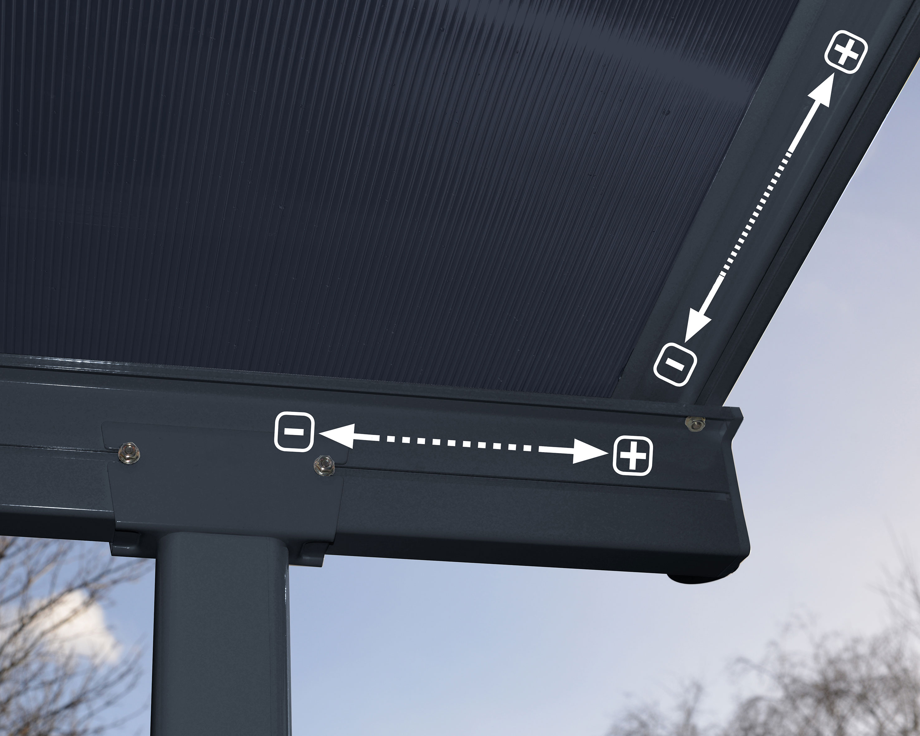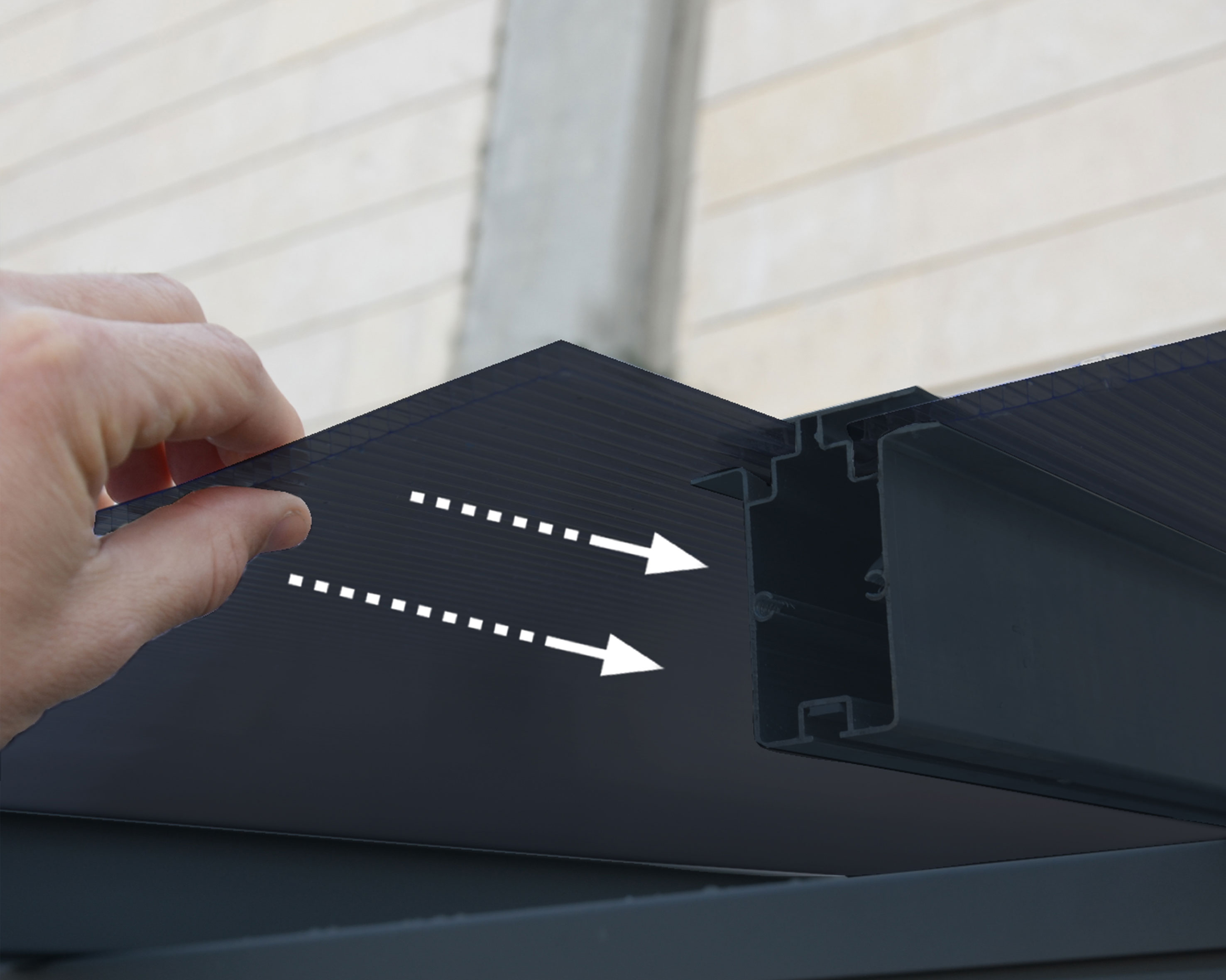 ✔️הפאנלים של הפרגולה SIERA צבועים בצבע אפור אטום עם 0% העברת אור.
